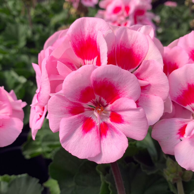 Zonal Geraniums get their name from the "zone" of red, blue or purple color striping through the middle of their leaves. This attribute is a helpful way to distinguish a zonal geranium. Our Zonal Geraniums come in many different colors and are great for containers or landscapes!