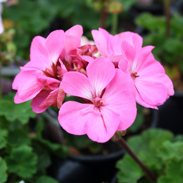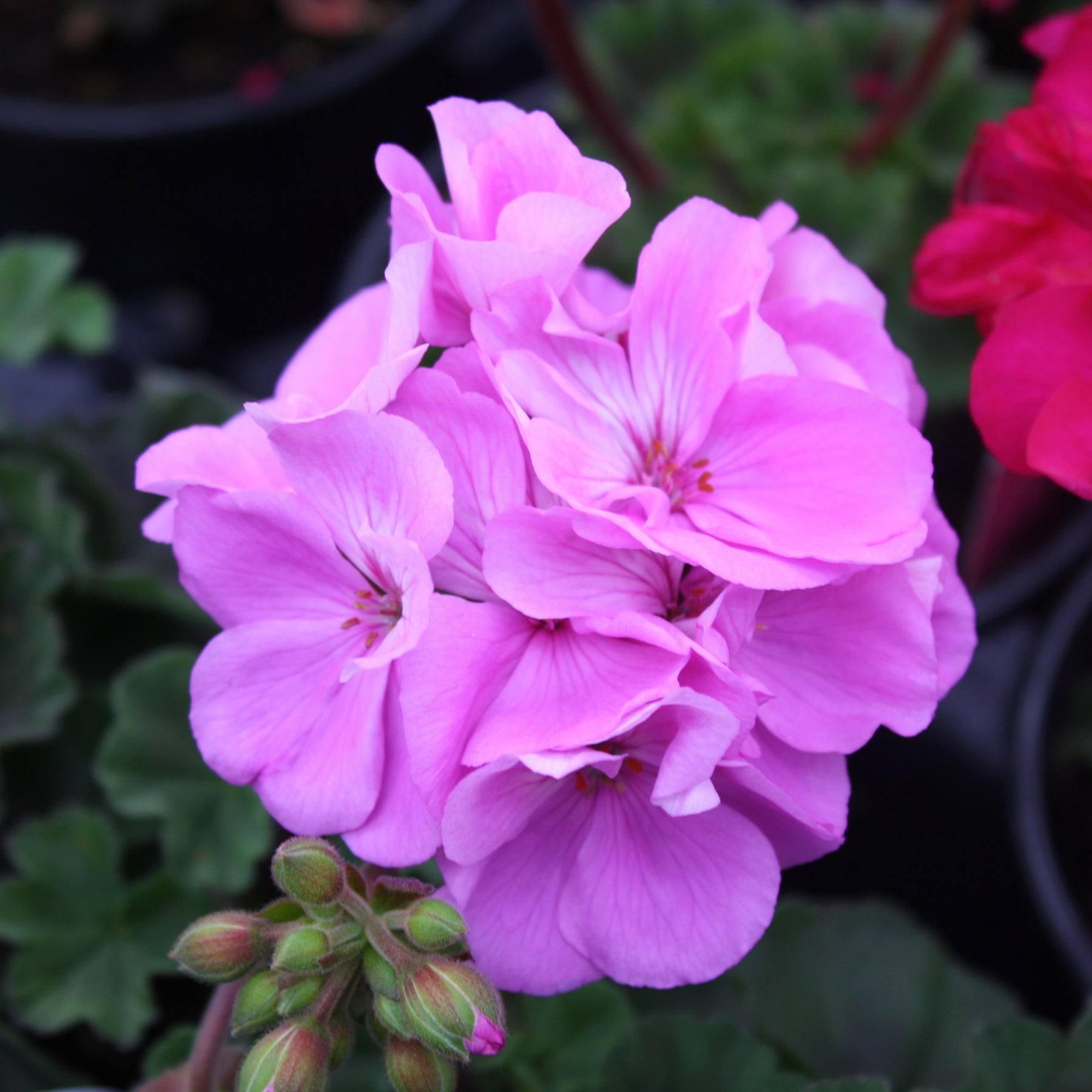 Zonal Geraniums get their name from the "zone" of red, blue or purple color striping through the middle of their leaves. This attribute is a helpful way to distinguish a zonal geranium. Our Zonal Geraniums come in many different colors and are great for containers or landscapes! A zonal geranium's vibrant array of colors make it an attractive addition to any outdoor space. With hardy petals and full foliage, Zonal Geraniums are easy to care for and will offer long-lasting blooms throughout the season.